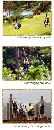 No prior experience is needed! Our highly trained guides will fit you with state-of-the-art equipment and ease you into the course with a training session where everyone will practice with the equipment and learn the techniques before embarking on the tour. Because of the time, effort, and experience put forth in designing our zip line tour you will not be required to brake yourself or drag yourself over spans of cable. Our expertly designed tour will not require "hand braking" to slow yourself down, so you can spend more time enjoying the tour and leave your safety to us. Our professionally trained staff will take care of you from start to finish.